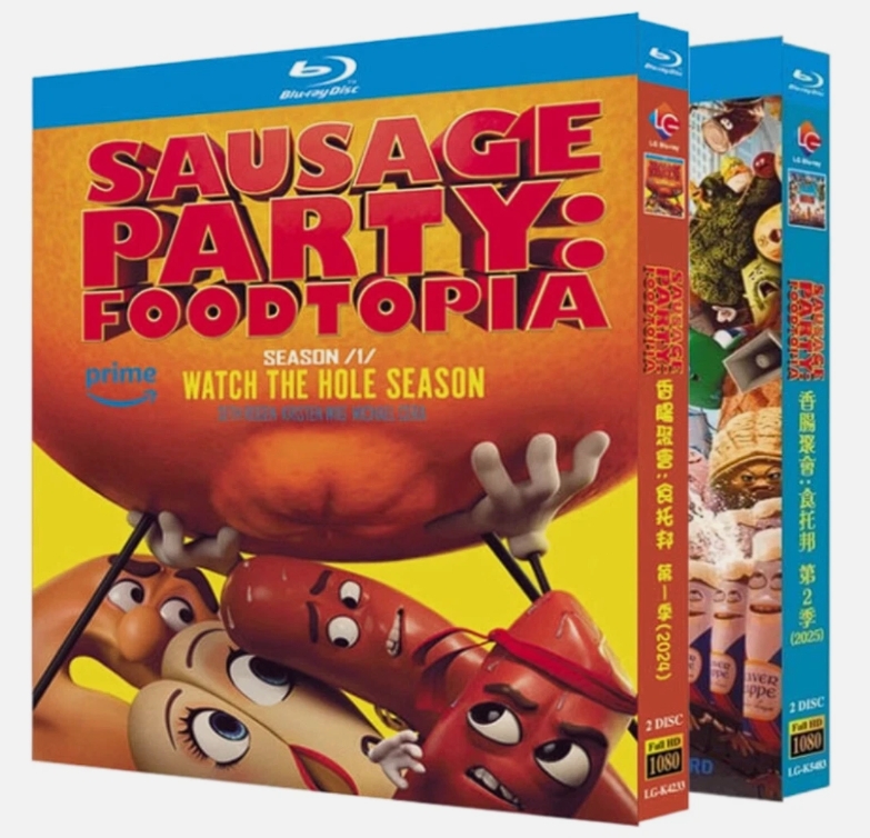 The Sausage Party: Season 1-2 (2025) 4-Discs New Box Set is a Blu-ray BD-R collection featuring the popular animated series. This box set includes all episodes from the first and second seasons of the show, providing fans with hours of entertainment. With high-quality Blu-ray discs, viewers can enjoy crisp and clear visuals and immersive sound quality while following the comedic adventures of the sausage characters. This collection is a must-have for any fan of the show looking to add it to their media library.